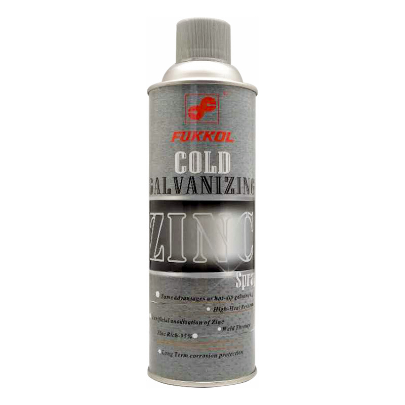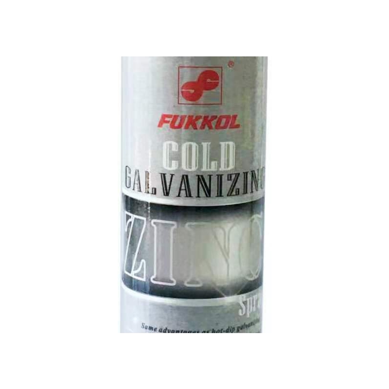 FUKKOL Zinc Cold Galvanic Spray A single component anti-rust cold galvanized coating capable of joining with any metal substrate.High performance zinc plating agent with 98% pure zinc content in thin films,It can be adhered to bare metal by electrochemical action.This coating provides active plating protection,Rust can be prevented even in case of scratches or wear.The coating dries quickly and has excellent adhesion. Grey coating is formed after use.