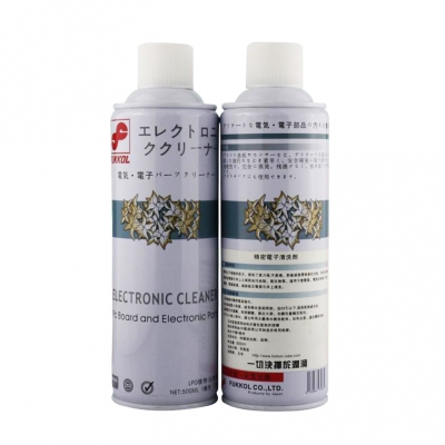 FUKKOL Electronic Cleaner is a unique blend of petroleum distilates and alcohol .As a suitable precision cleaner ,it is chemically inert and highly pure .It evaporates rapidly ,leaves no residue and can instantly remove light contaminants ,dust ,lint,atmospheric oils ,moisture and dirt .By dissolving and rinsing away contaminants ,it helps prevent contact failure and malfunction . Also,itis CFC-free ,o-zone friendly and harmless to plastics and paper tapes.